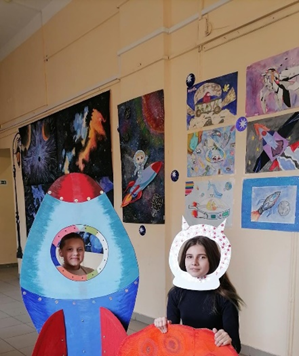В апреле 2021 года состоялся пятый, заключительный этап, в рамках работы над проектом. Во-первых, ребята в День космонавтики приняли участие в школьной викторине. Она была организована на переменах: каждую перемену каждый класс получал конверты с вопросами по истории космонавтики, астрономии, с загадками, ребусами и шарадами о космосе. Знания, которые ребята получили за время работы над проектом, позволили шестиклассникам правильно ответить практически на все вопросы. Также учащимся 5-6 классов было предложено поучаствовать в школьной выставке рисунков «Космический транспорт будущего». Надо было нарисовать на листе А – 3 космолёт, из класса были выбраны 3 художника-добровольца, которые достойно выполнили это задание.