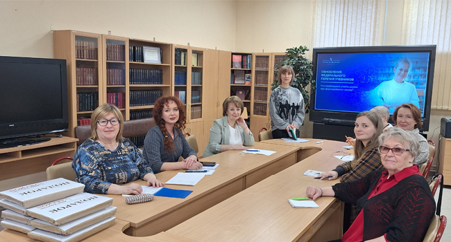 15 апреля 2024 года в библиотеке ГБОУ СОШ №423 прошел семинар для школьных библиотекарей «Новые линии учебников и сопутствующих методических пособий по предметам для ОУ на 2024-2025гг» (рекомендации от издательства «Просвещение»).